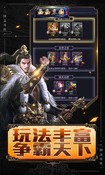 《西西三国》是一款以三国为题材的写实画风的塔防游戏。人物角色立体精致,场景画面精细唯美。游戏融合了多种全新玩法,四大职业体系,独创无限回廊、国战多种养成主线、数十位名将深度养成、千余种阵容搭配,构建了丰富多彩的塔防三国诠释了全新的塔防策略卡牌手游!